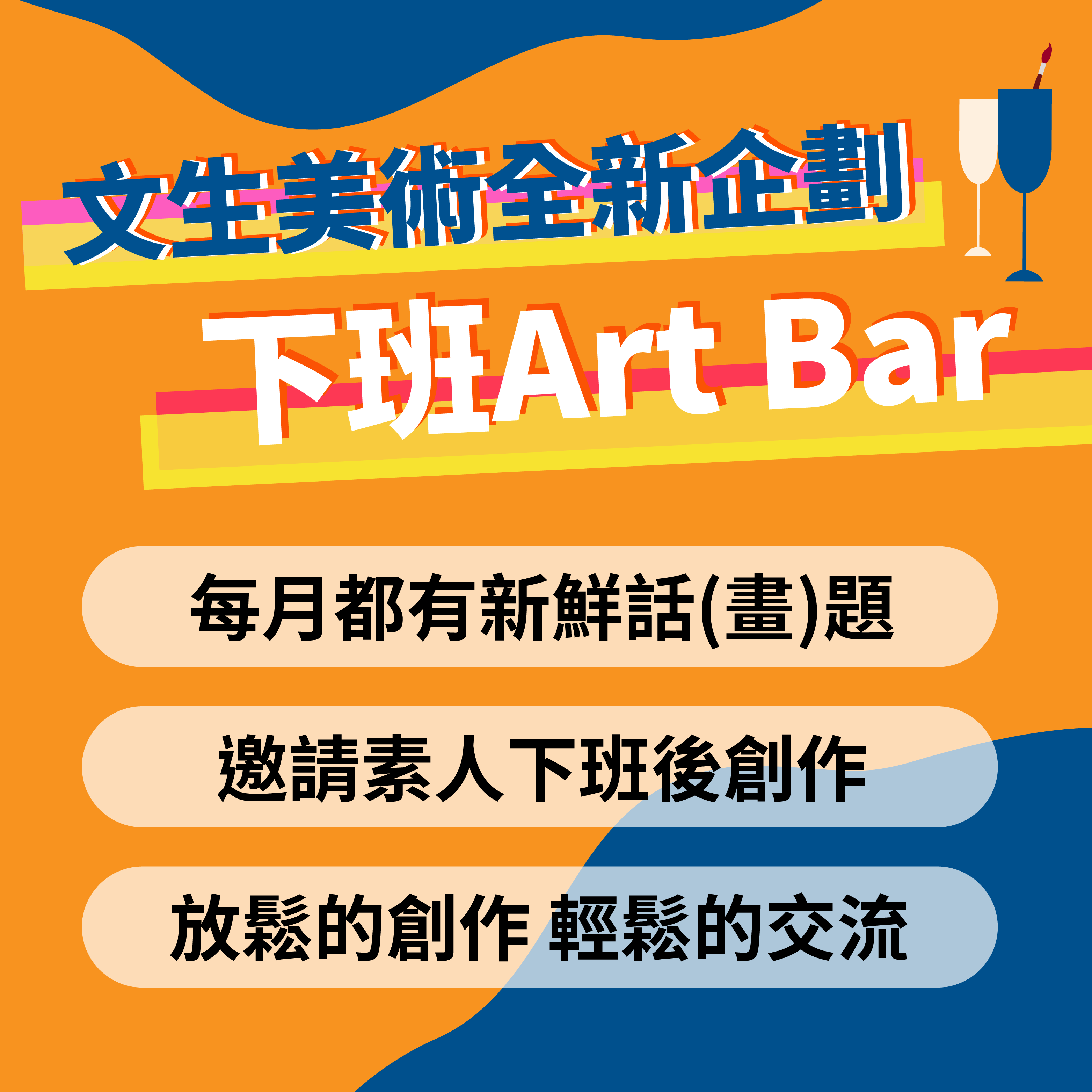 facebook全新企劃「下班Art Bar」 ✨✨文生美術全新企劃「下班Art Bar」 希望能夠打破以往大家對於創作、繪畫的偏見 畫畫是一件美好、放鬆、沒有壓力的事😍 不需要因為顏色塗出去線外就擔憂 也不需要因為畫不「圓」就壓力大 我們邀請不同的創作者在下班後嘗試創作 每個月會有一個新鮮「畫」題 讓創作者的作品結合生活與繪畫 也讓文生美術社群粉絲都能像在Bar一樣輕鬆、放鬆🙌 前導故事 更多全新企劃「下班Art Bar」請至文生美術facebook