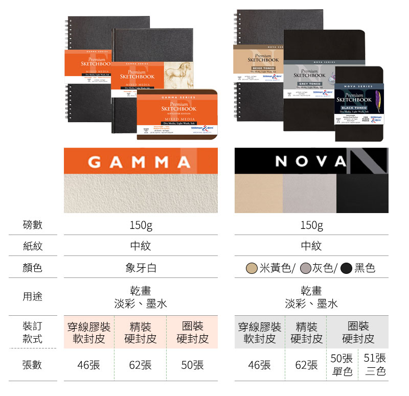 - 線圈硬封皮:線圈裝訂可利於翻頁對折的使用方式,也讓創作時能夠輕鬆翻頁,易於使用。