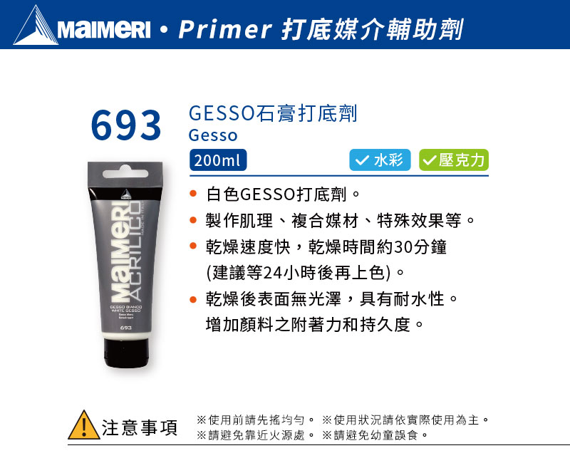Maimeri美利 打底媒介系列 693Gesso打底劑 200ml