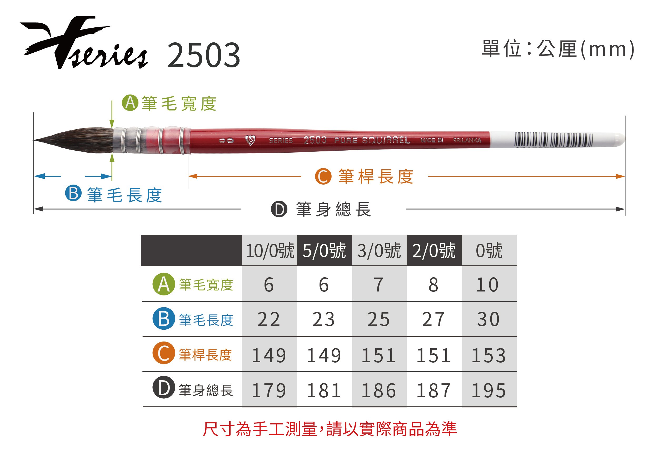 - 2503純松鼠毛系列,採用高級細緻的法國喀山松鼠毛製成。