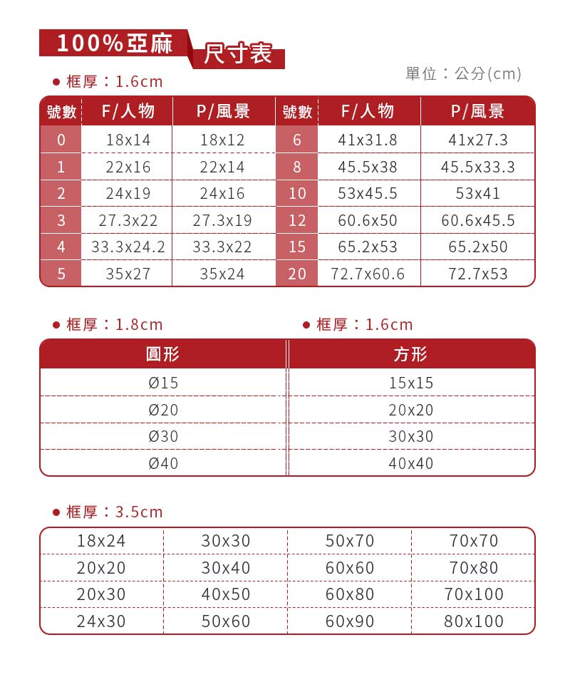 材質:100%亞麻布、松木框(圓形:MDF密度板)