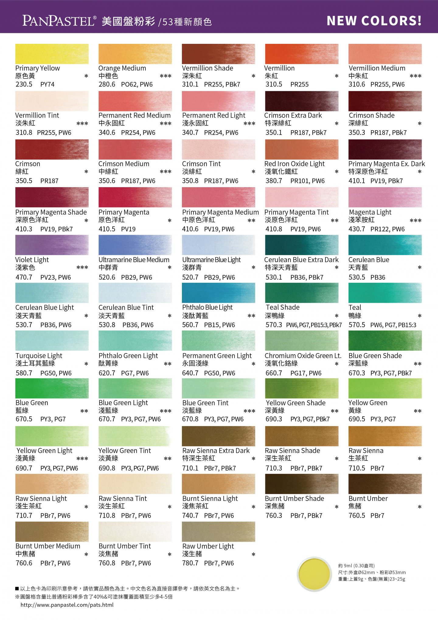 商品說明: PanPastel粉彩餅使用一定品質的藝術家的色粉顏料,及採用細緻的生產工藝,現今受許多藝術家愛戴 。 色彩純淨多樣,質地柔軟、粉質不易飛揚、具耐光性 。 覆蓋能力與一般的粉彩相較下的表現性有一定水準 。 搭配海綿工具,能創造出不同層次感的筆觸,使畫面豐富 。 顏色可互相混和調色,擦拭容易,清理工作快速又簡單 。 不僅限於粉彩,可另外結合丙烯顏料,油墨,水彩,鉛筆等各式複合式媒材,是適應性好的繪畫媒材 。