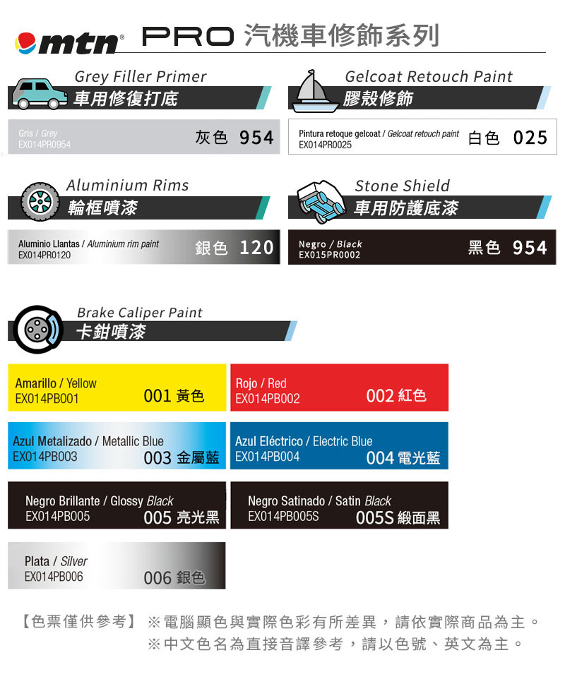 ※使用前建議噴上MTN汽車鈑金打底噴漆,以獲得更佳的附著度及耐久性。