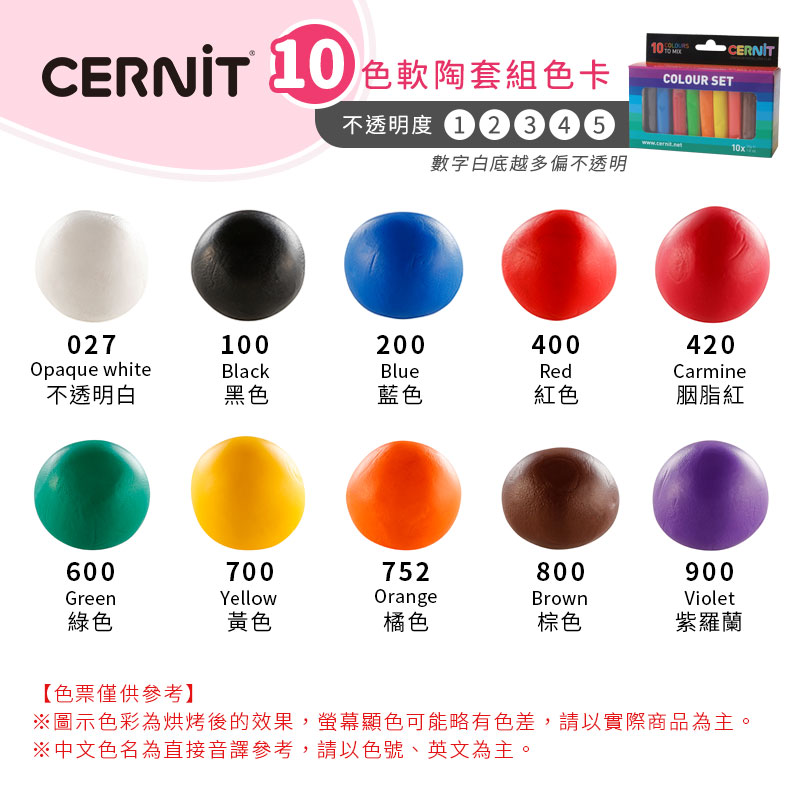 Cernit 烘烤軟陶 一號經典色系 10色套組