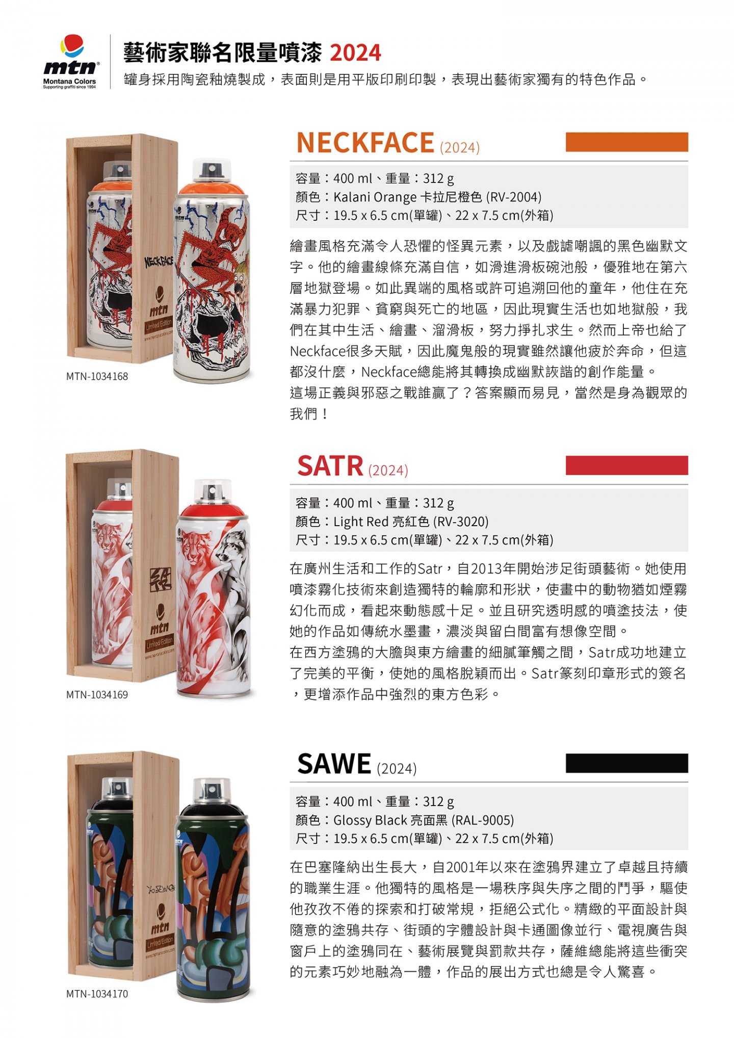MTN蒙大拿 2024年 藝術家聯名限量噴漆罐 400ml