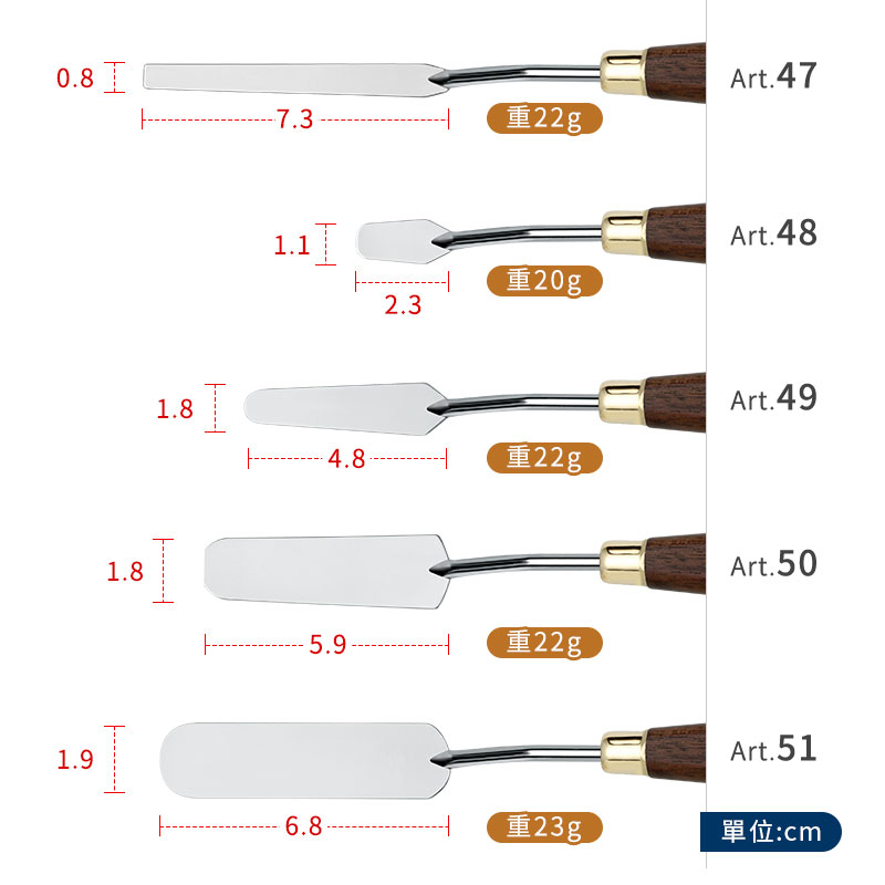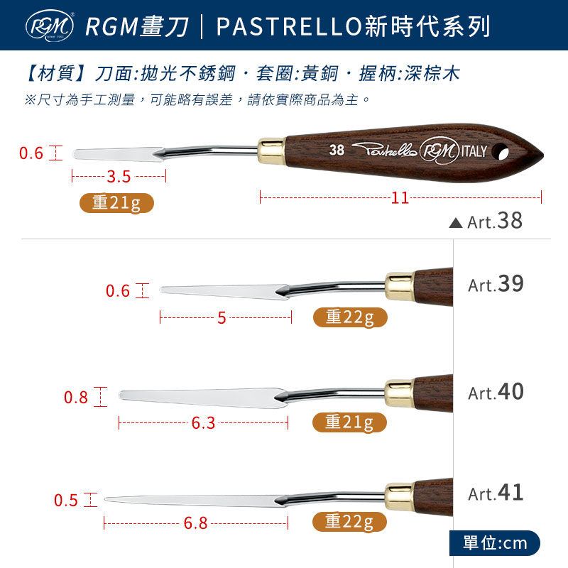 - RGM與藝術家Franco Pastrello歷經數十年研發與測試所打造,專為柔性刮刀技巧打造。