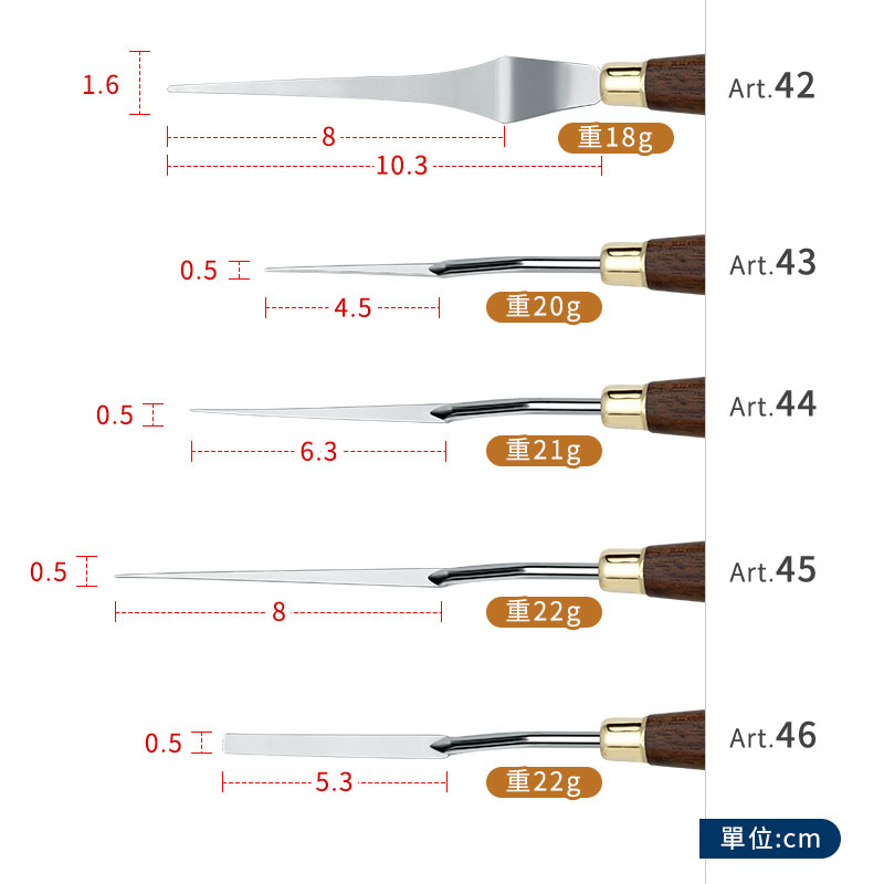 - 特殊窄長型刀片設計,強調細節掌控,能創造輕盈筆觸與細膩紋理。