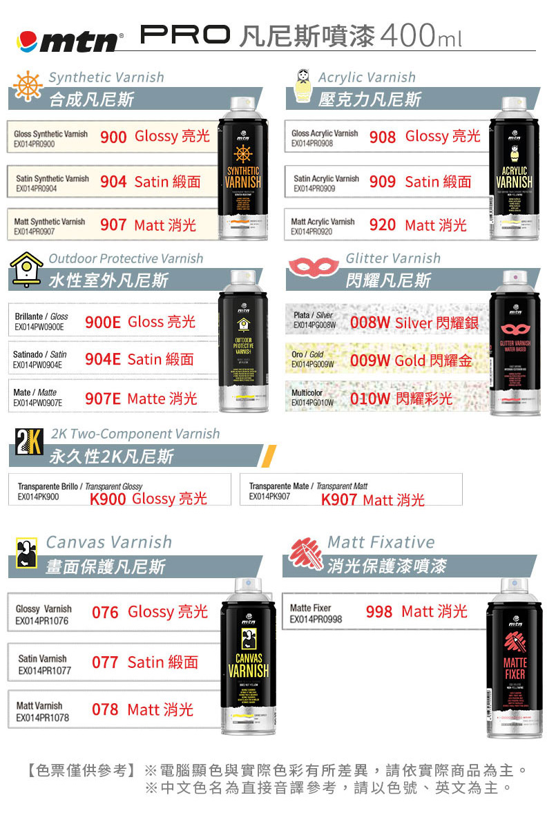 ✦合成凡尼斯(亮光900、消光907、緞面904)