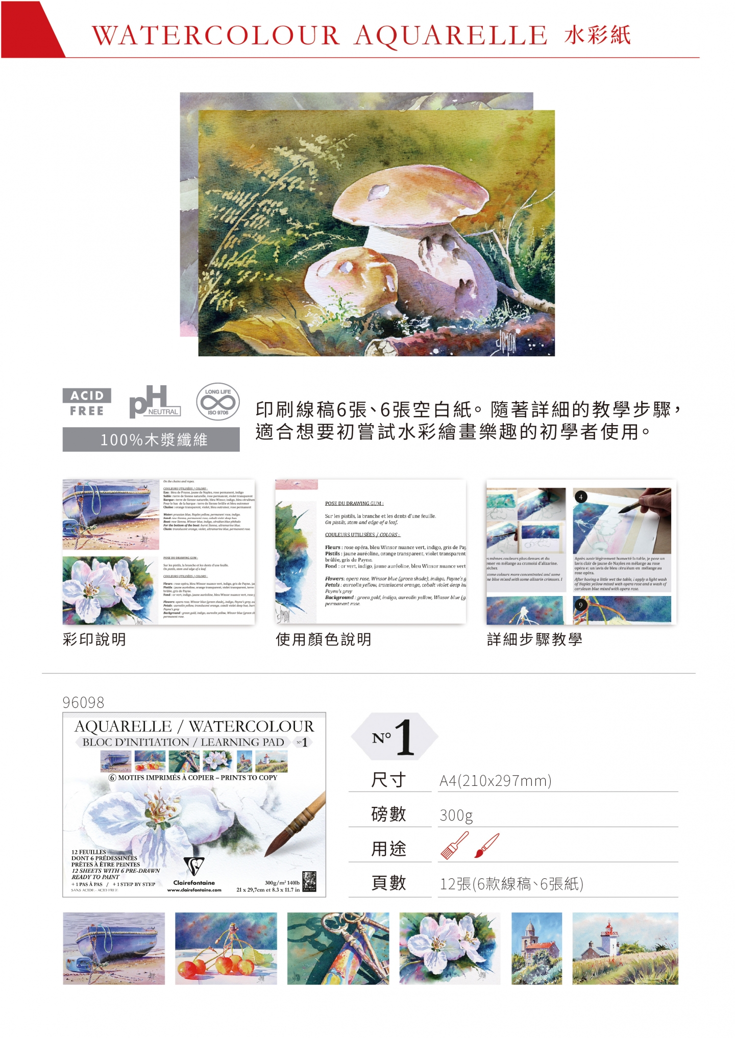 商品說明: 紙張厚實堅韌,吸水性佳不易起皺,顯色效果較好。 不含化學增光劑,不會因反光而令人感到刺眼。 內有彩色詳細繪畫教學步驟,可以跟著一步一步畫,適合水彩繪畫的初學者使用。 系列1:有四款(N1花卉、N2馬卡龍、N3馬款(方型)、N4馬款)可選擇,每款皆有6張線稿及6張空白水彩紙可使用。 系列2:有三款(巴黎明信片、植物、動物)可選擇,每款皆有6張線稿x2及3張空白水彩紙可使用。